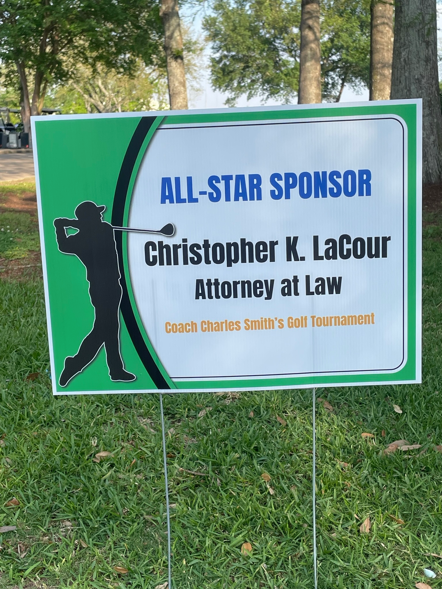 Pictured is Naismith Basketball Hall of Fame member Coach Charles Smith and Attorney Christopher K. LaCour at his Inaugural Hall Fame Golf Scramble.